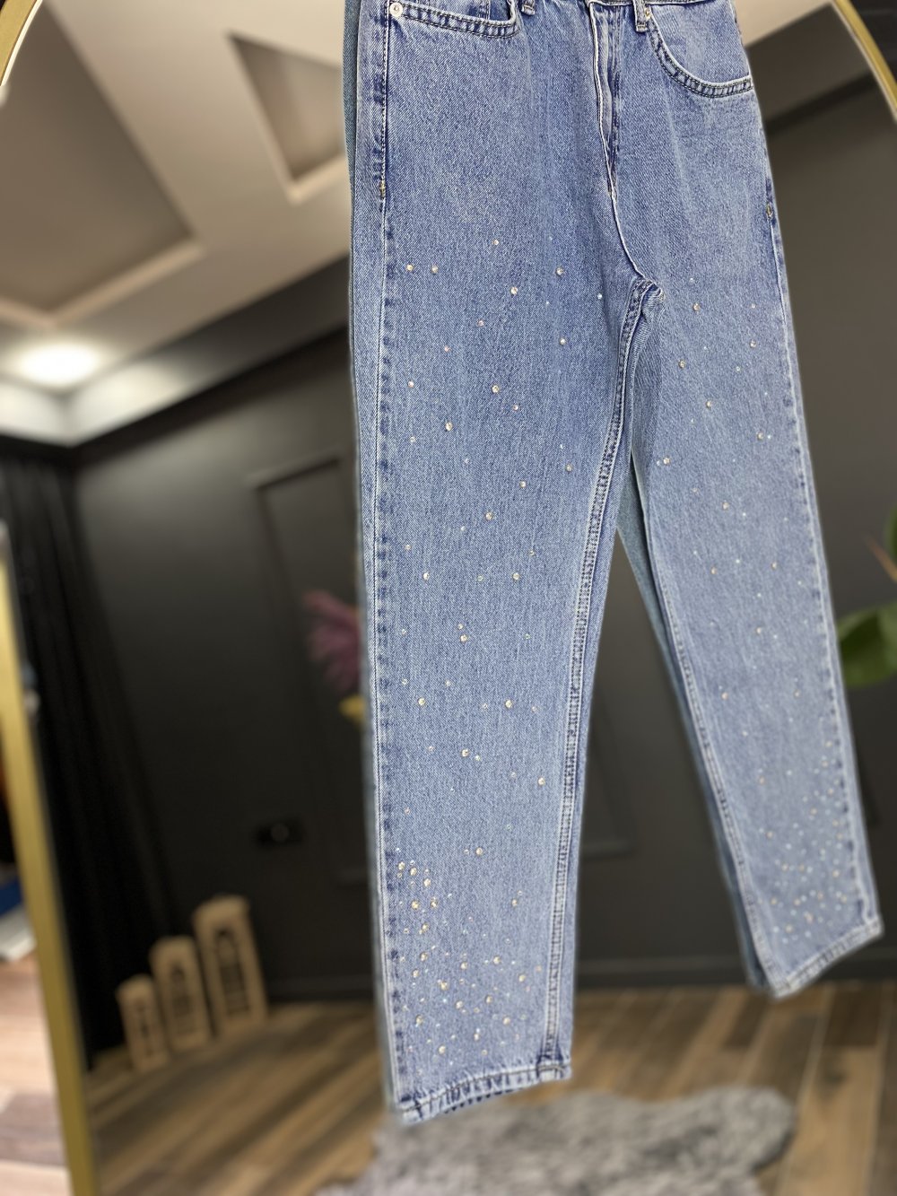070-Paça detay kot pantolon Mavi