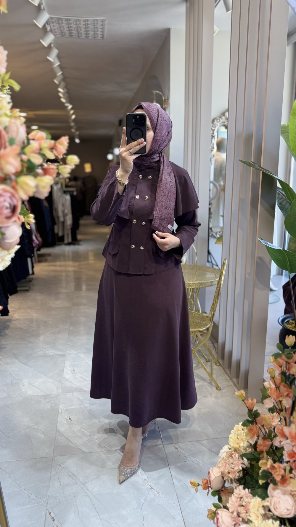 BLUZ ONDEN DUĞMELİ PELERIN DETAY