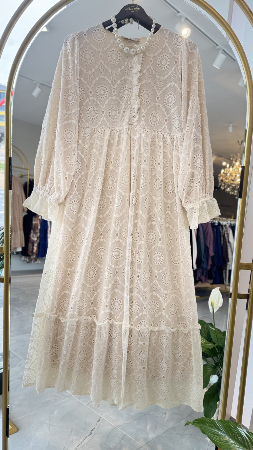 Tül geçişli dantel kumaştır komple astarlıdır rahat kalıptır