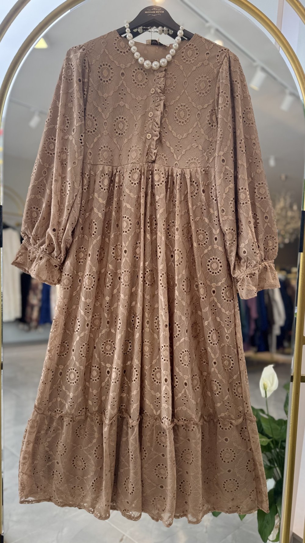 Tül geçişli dantel kumaştır komple astarlıdır rahat kalıptır