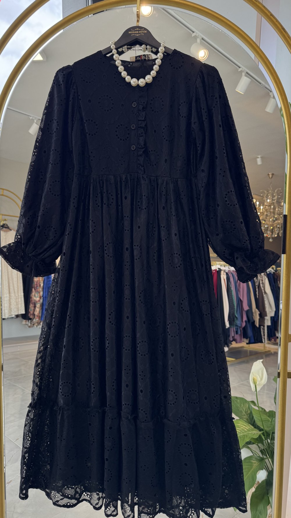 Tül geçişli dantel kumaştır komple astarlıdır rahat kalıptır