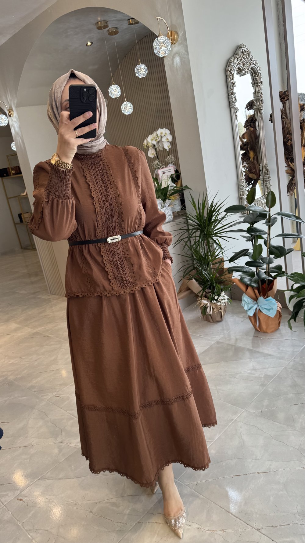 Biricik etekli takım Kahverengi