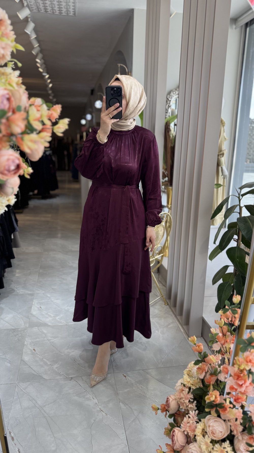 DEMET ELBİSE (3737) Mürdüm
