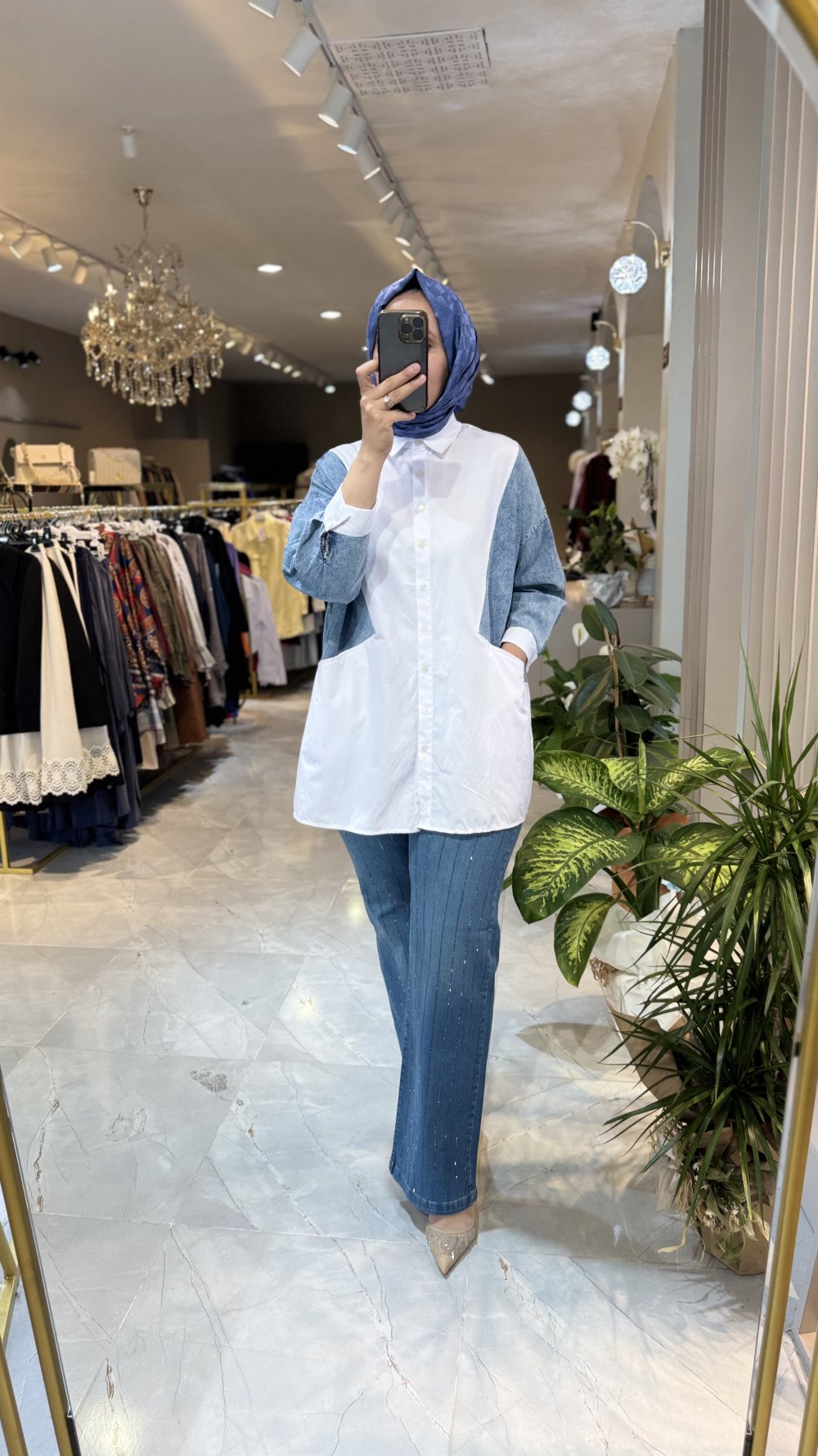 DENİMLİ GÖMLEK Turkuaz Beyaz