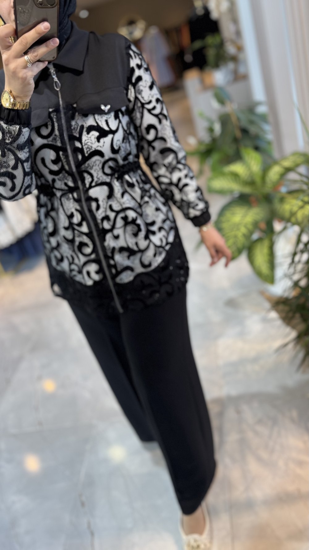 Ürün çekimlerinde içlik olarak beyaz gömlek kullanılmıştır transparan kadife detaylar ve pul Payet detaylar mevcuttur ortalama 85 cm boydur