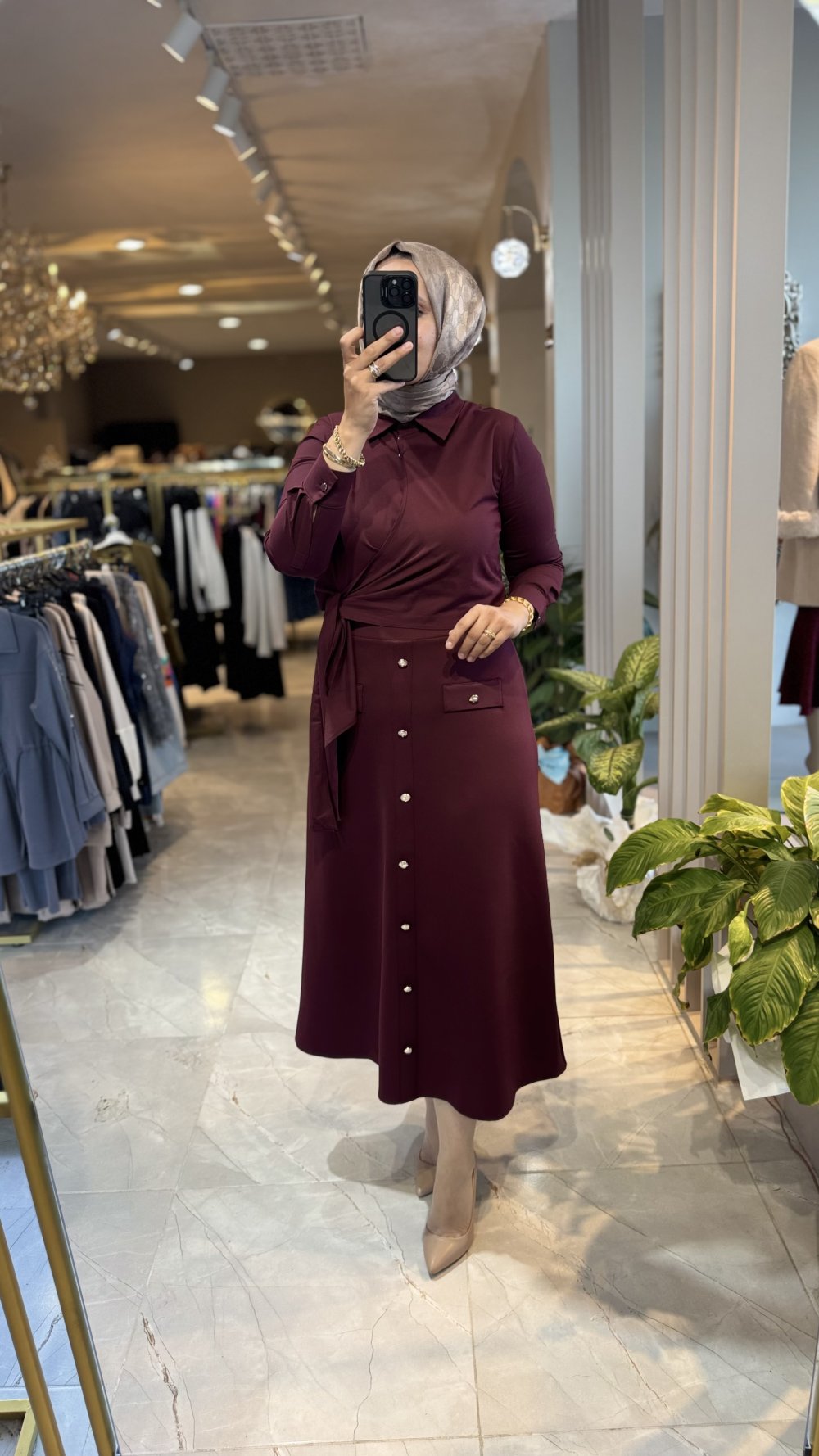 DÜĞME DETAY ETEK Bordo