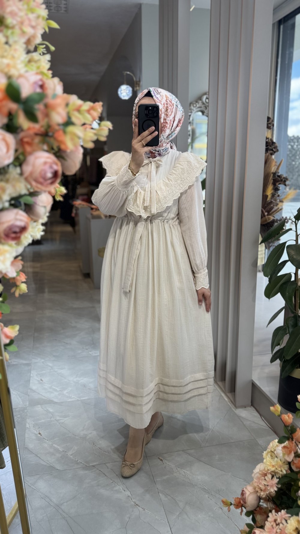 ELBİSE KUMAŞI GOFRE VE DANTEL BİRLEŞİMİDİR