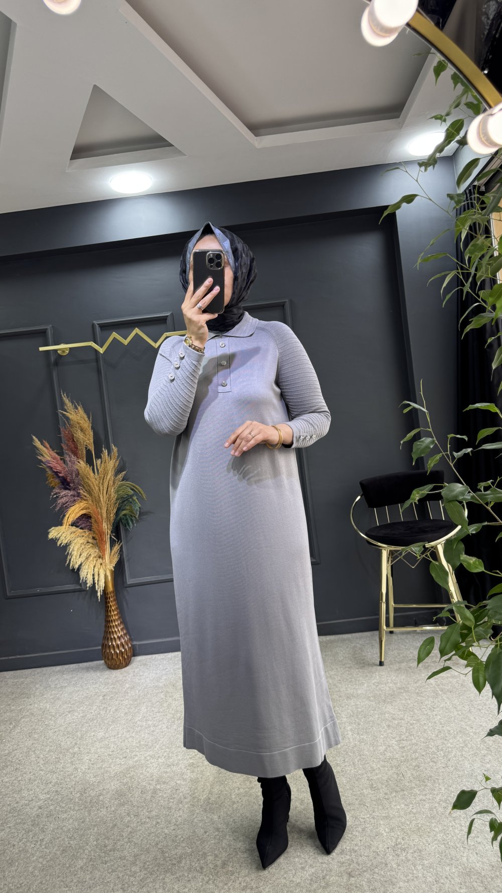 Henza merserize elbise (2985) Gri