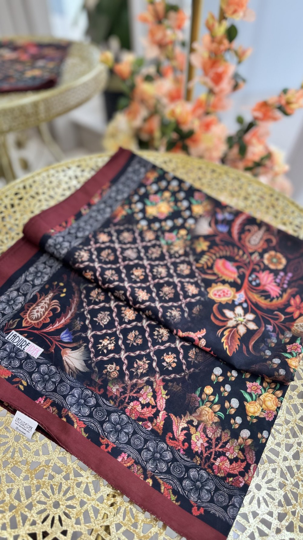 LADURE ETNİK DESEN ŞAL Siyah Bordo