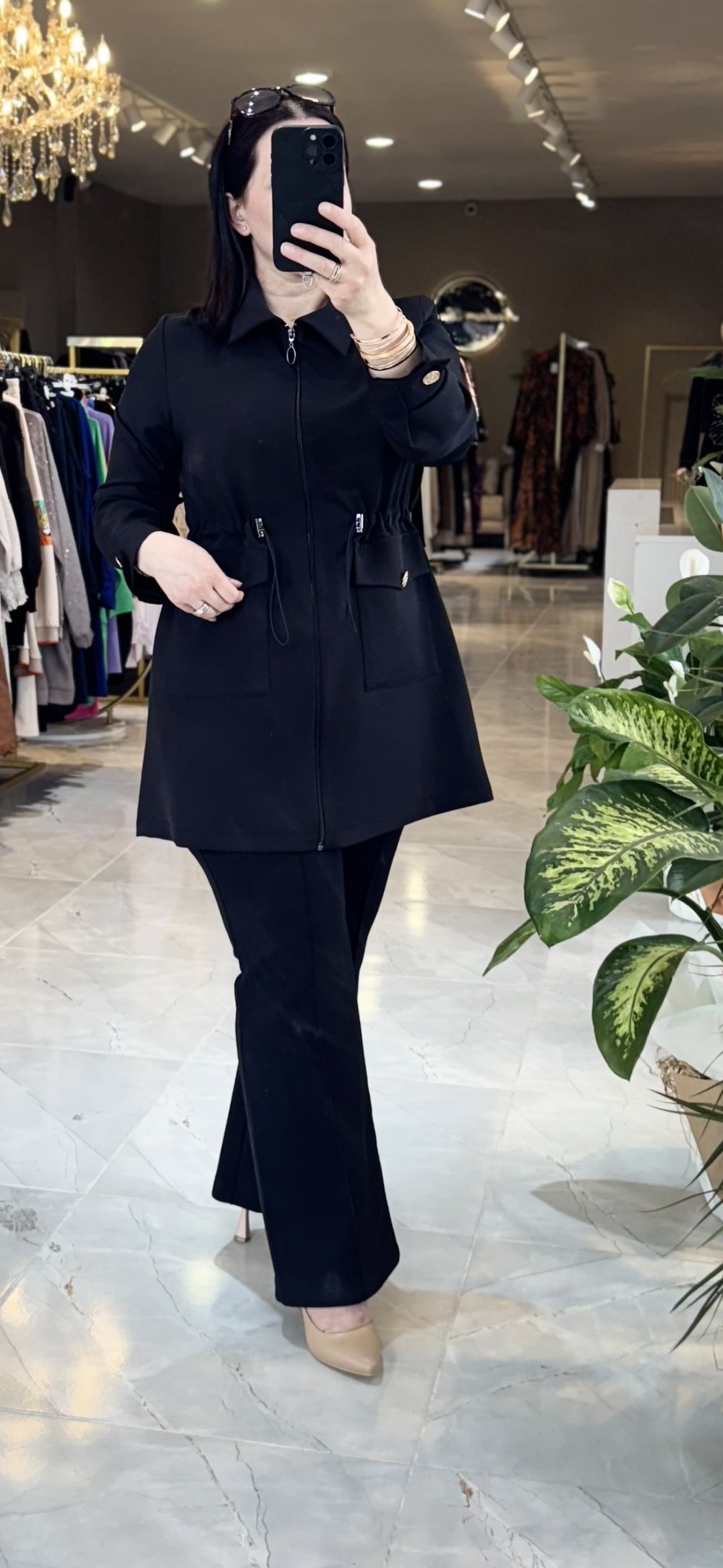 Fermuarlı belinde aayarlana bilen lastik mevcut kollar apoletli manşet ve cep kapaklarında gold düğme detay