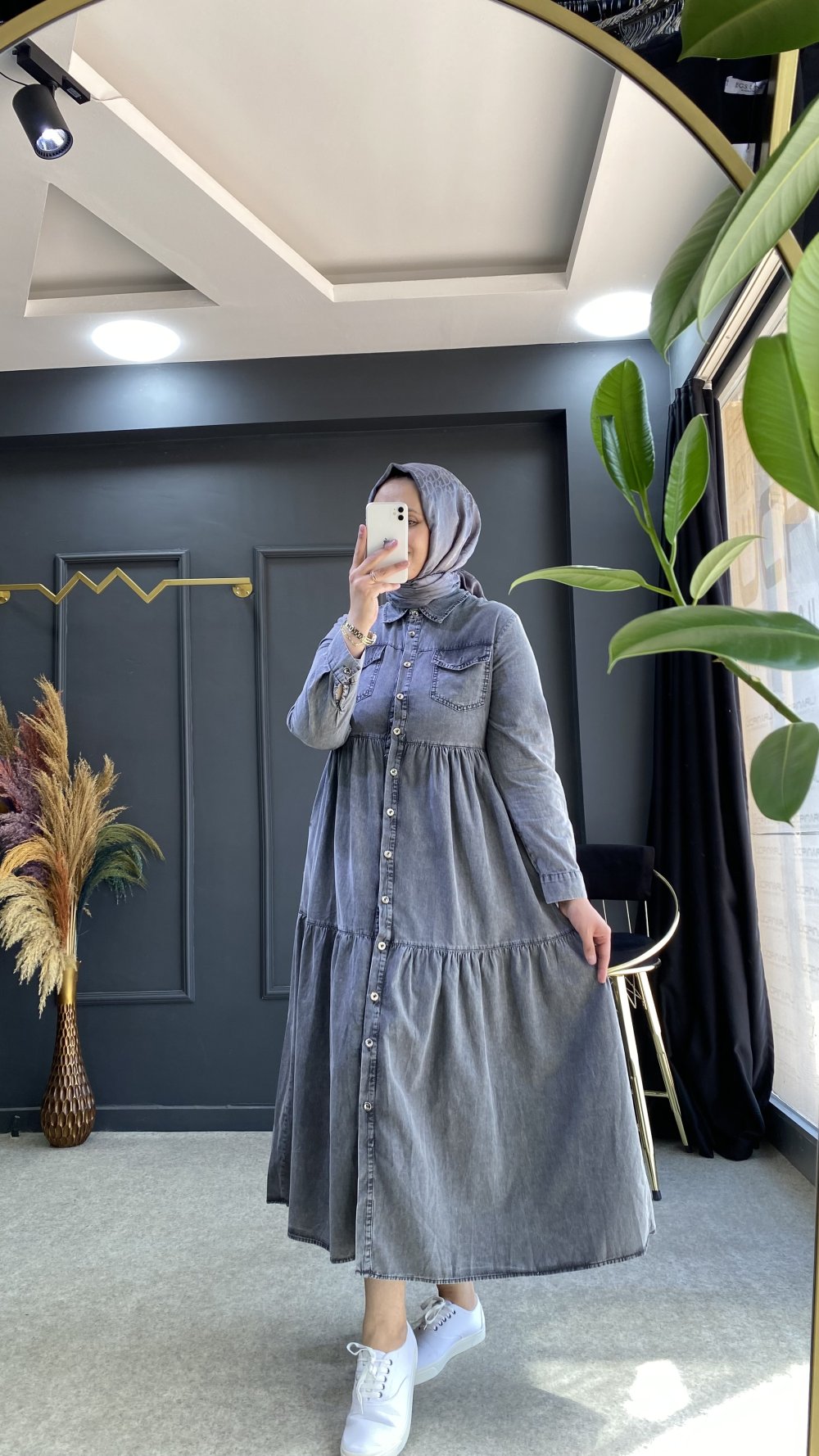 LİVA KOT ELBİSE Gri
