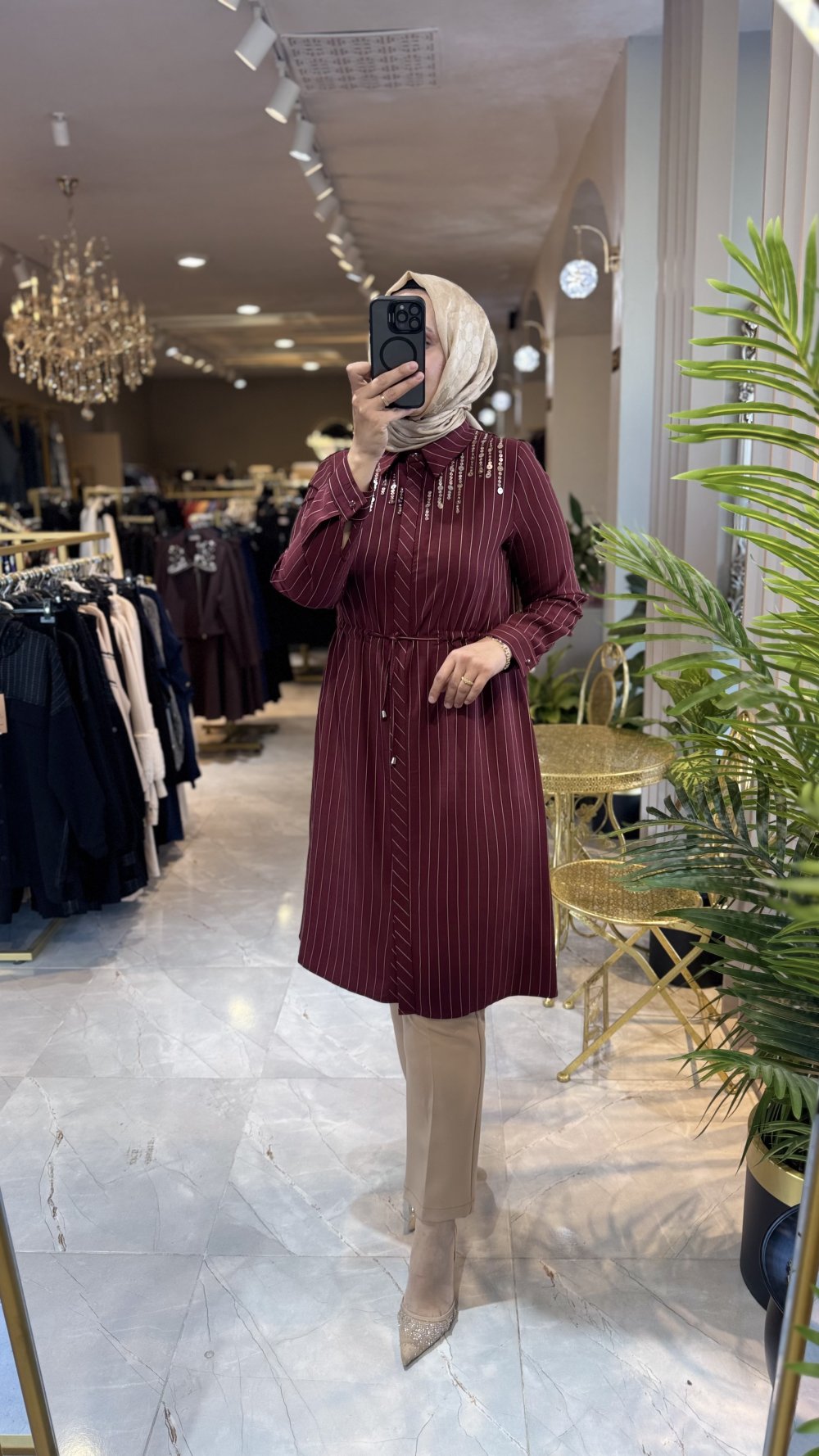 NPRİVE 9493 PUL İŞLEME DET.GİY ÇIK TUNİK Bordo