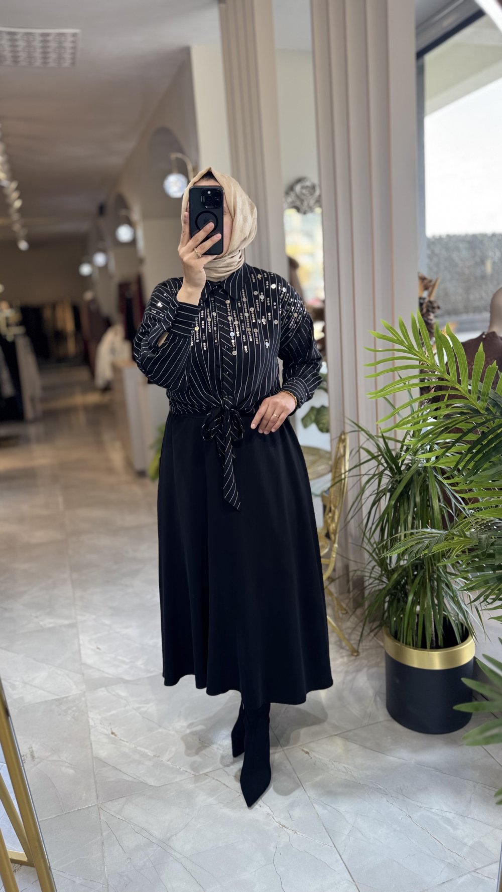 GÖMLEK ONDE BAGLAMA VE TAŞ DETAY ETEK ARKADA FERMUARLI
