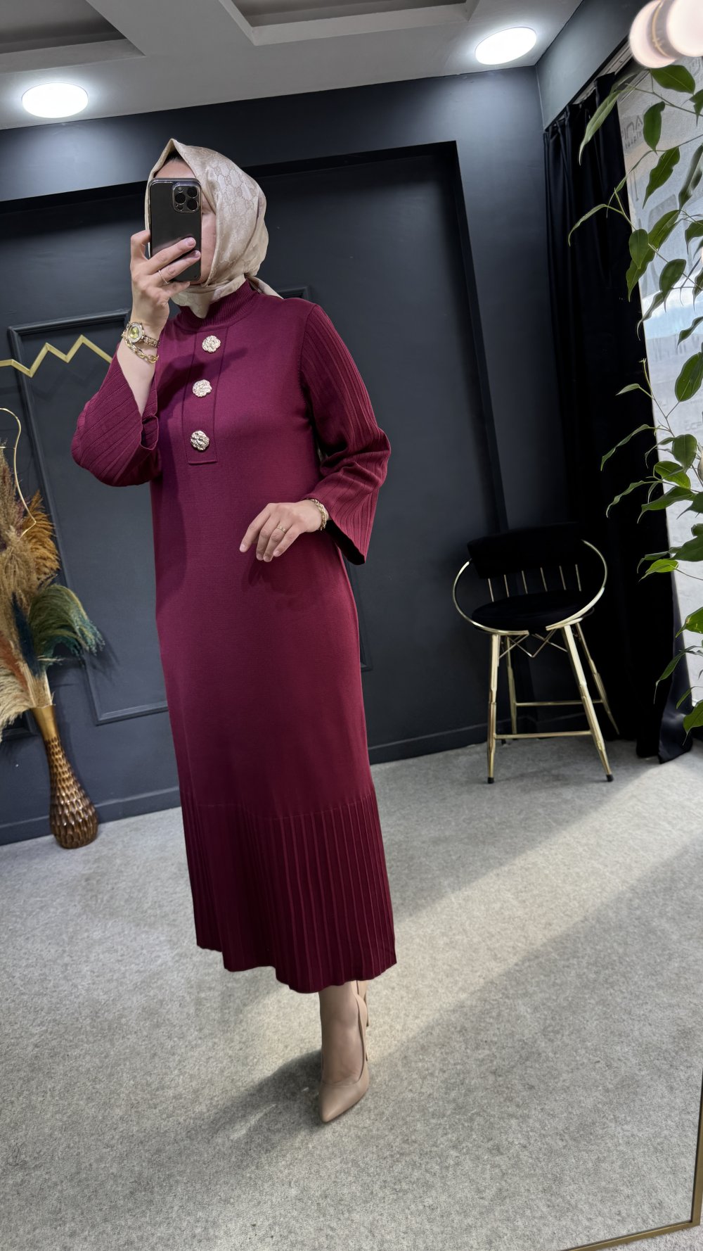 Umay merserize elbise Bordo